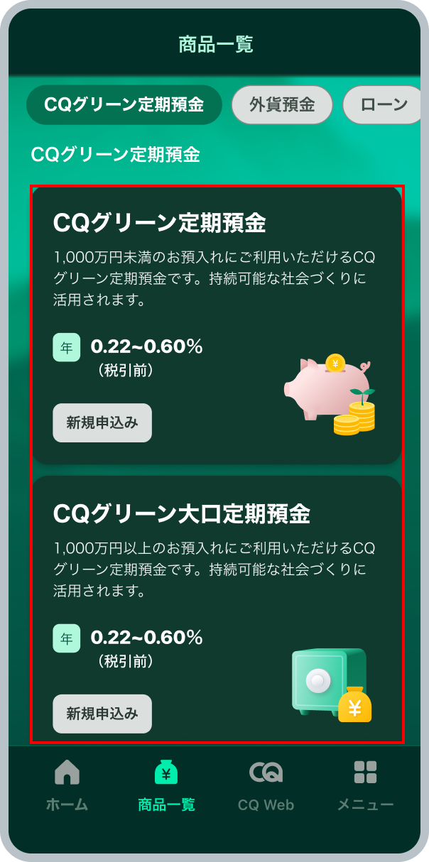CQグリーン定期預金のお預入れ方法