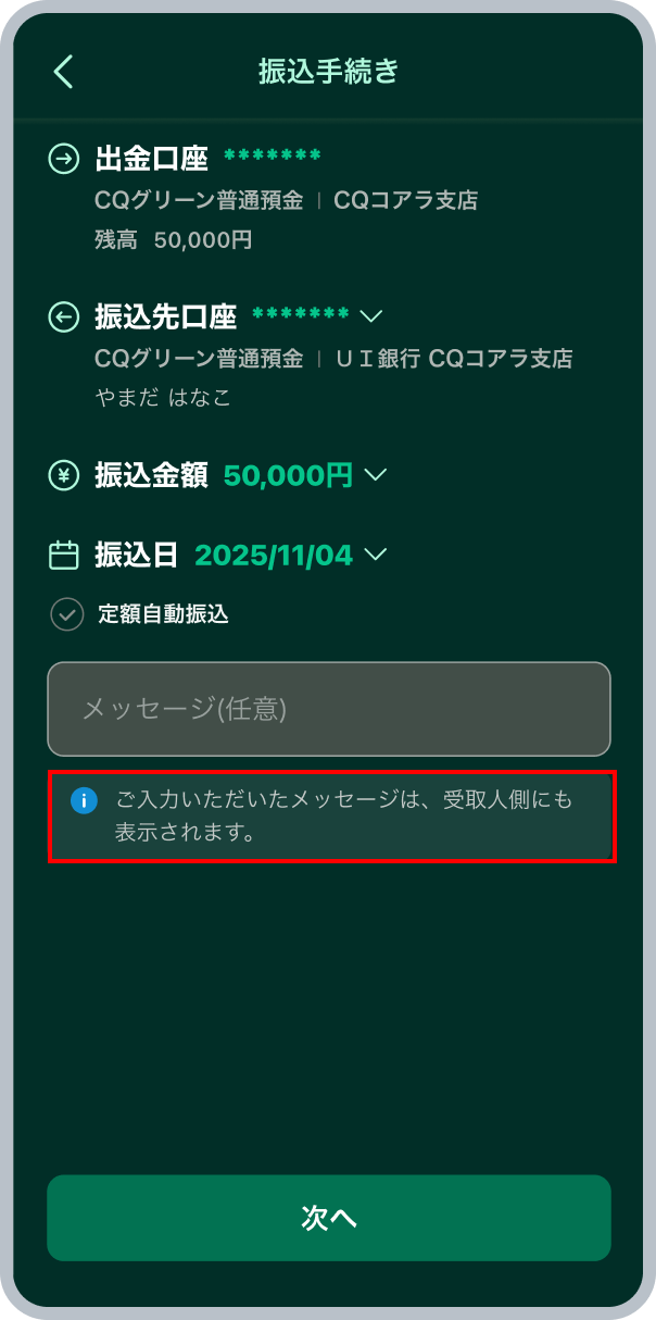 お振込みの操作方法