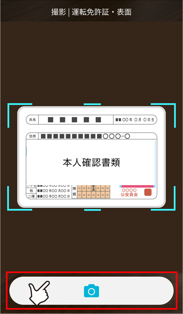 青の枠線内に「本人確認書類」を配置し、シャッターを押す。