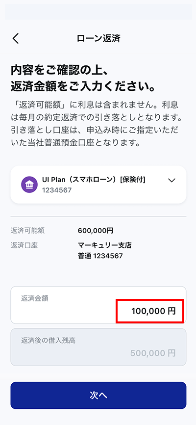 ※アプリでは利息はご返済いただけません。利息は毎月の約定返済でのご返済となります。