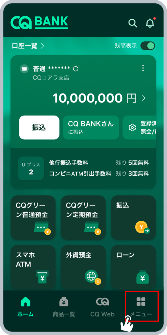 | 特典付与方法 | ご契約いただいているCQグリーン普通預金口座へご入金 |