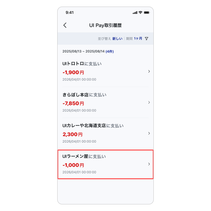 ※1回および1日あたりの支払い限度額は、UI銀行アプリご利用時の振込限度額と共通です。